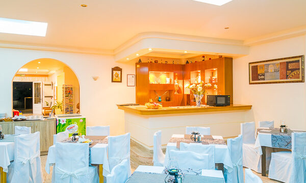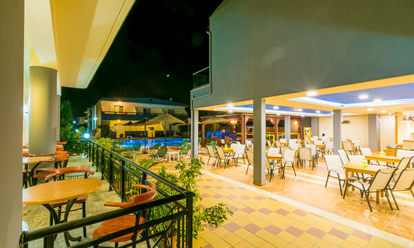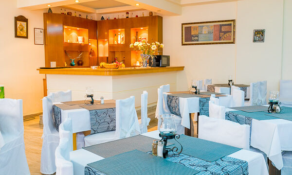In relation with the entire atmosphere the guests of the hotel can enjoy Breakfast , lunch & dinner at live action cooking main restaurant . A variety of Greek traditional cooking & nutrition at the continental buffet style during the dinner or they can choose extra service lunch from the a la carte menu* at the snack-bar. The a/c indoor & outdoor main restaurant is buffet style & live cooking . There are smoking and non-smoking seats.